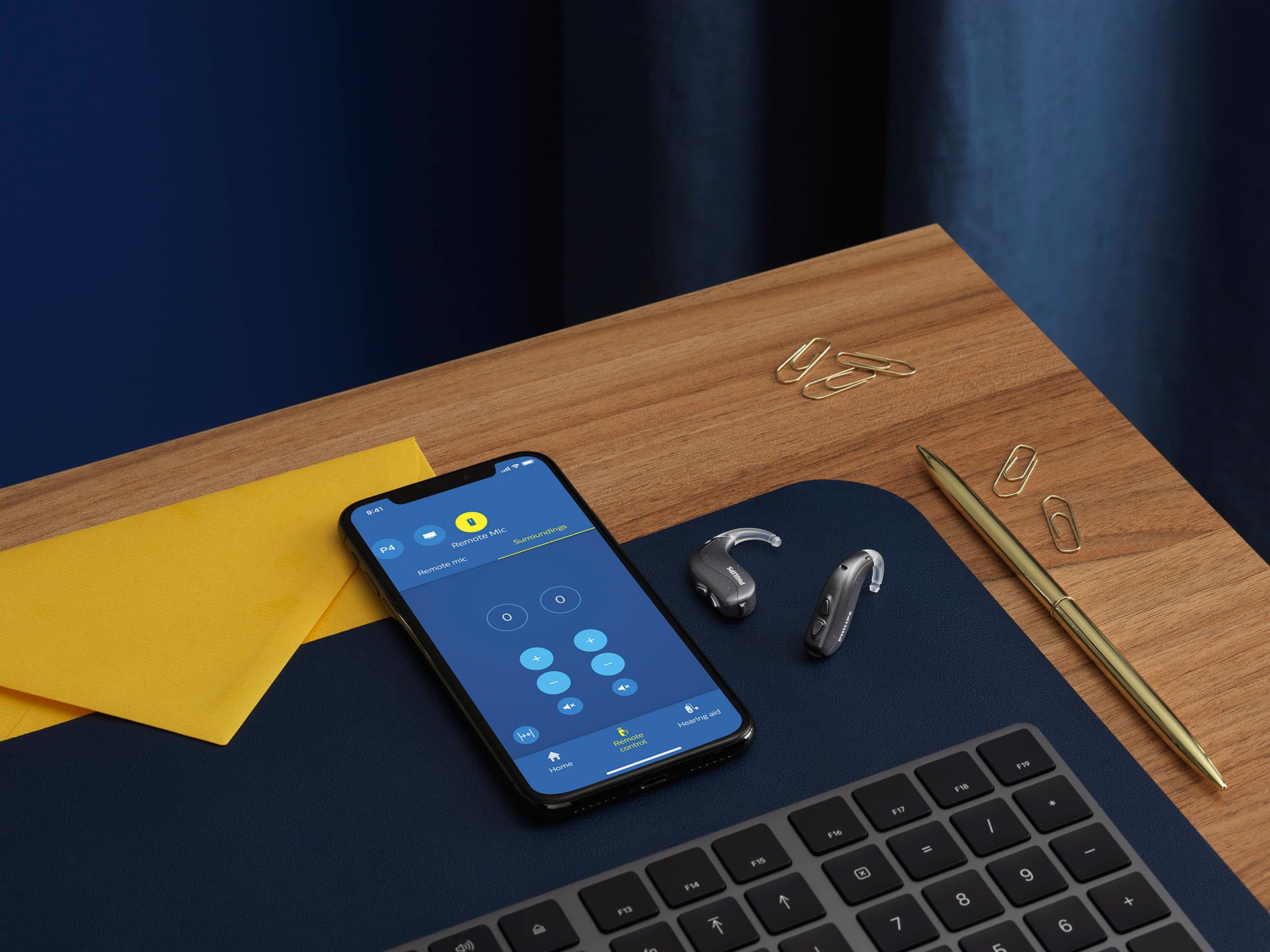 เชื่อมต่อกับ App HearLink 2 (iOS และ Android) ควบคุมการปรับระดับเสียง และเปลี่ยนโปรแกรมการฟังผ่านสมาร์ทโฟน