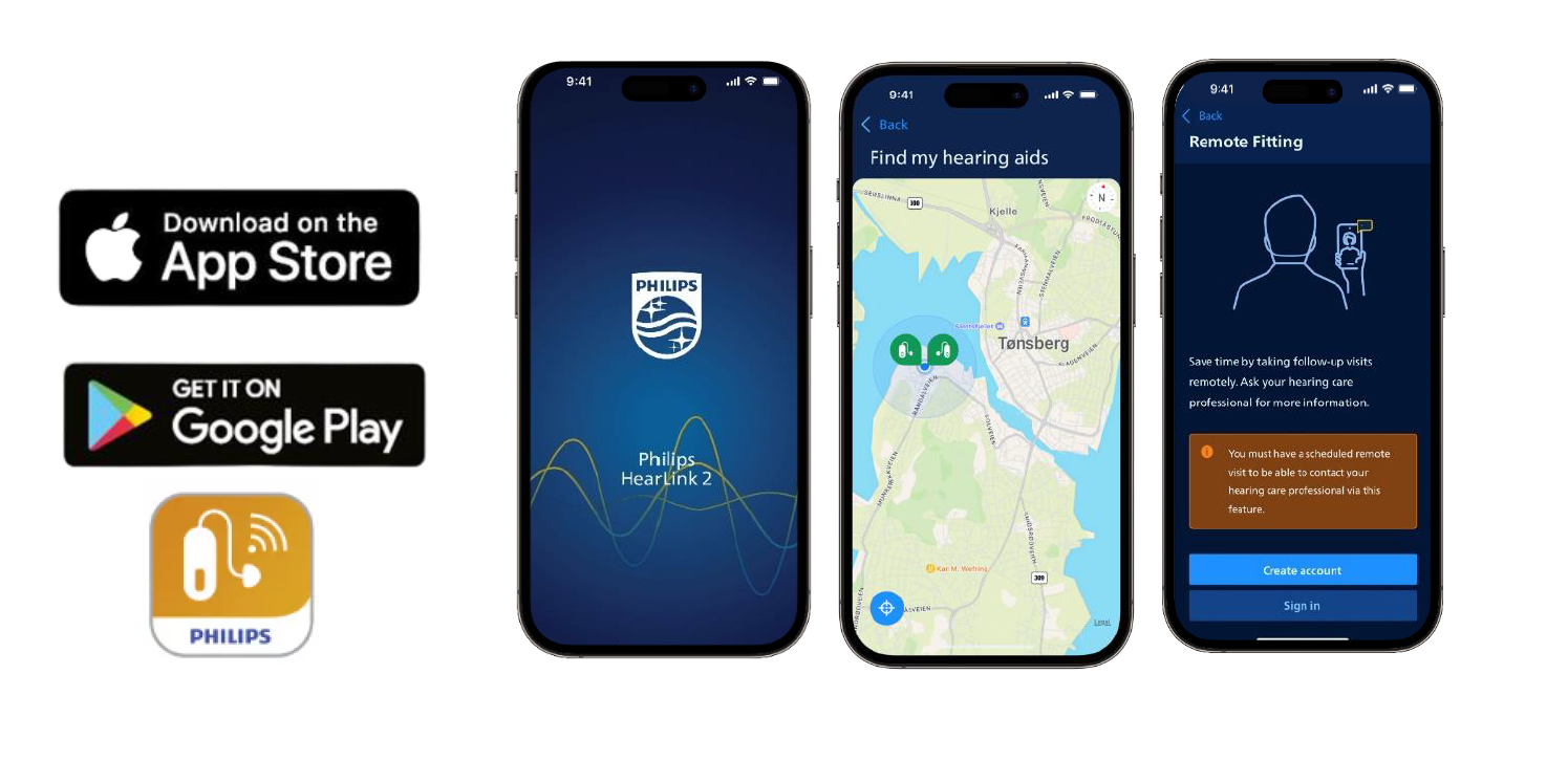 คุณสามารถควบคุมเครื่องช่วยฟัง Philips HearLink ของคุณได้อย่างสะดวก ซึ่งรองรับระบบ iOS และ Android ให้สมาร์ตโฟนกลายเป็นรีโมทควบคุมสำหรับการเปลี่ยนโปรแกรมการฟัง การปรับระดับความดังเสียง การปิดเสียงเครื่องช่วยฟัง การเปิดใช้งานตัวเลือกสตรีมสัญญาณเสียง รวมถึงการดูระดับแบตเตอรี่ของเครื่องช่วยฟัง หรือสถานะของการเชื่อมต่อจากสมาร์ตโฟนเข้ากับเครื่องช่วยฟัง มีฟังก์ชันค้นหาเครื่องช่วยฟังแบบระบุตำแหน่งผ่านสมาร์ตโฟน (Find my hearing aids) และสามารถรับบริการปรับเครื่องช่วยฟังระยะไกลได้ที่บ้านผ่านสมาร์ตโฟนของผู้ใช้งาน (Remote fitting)
